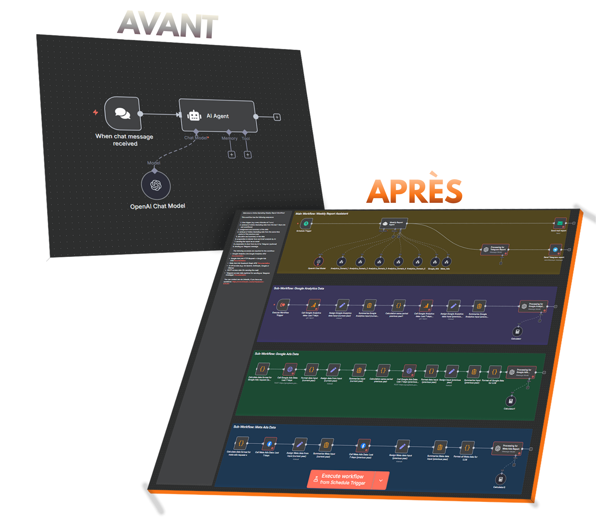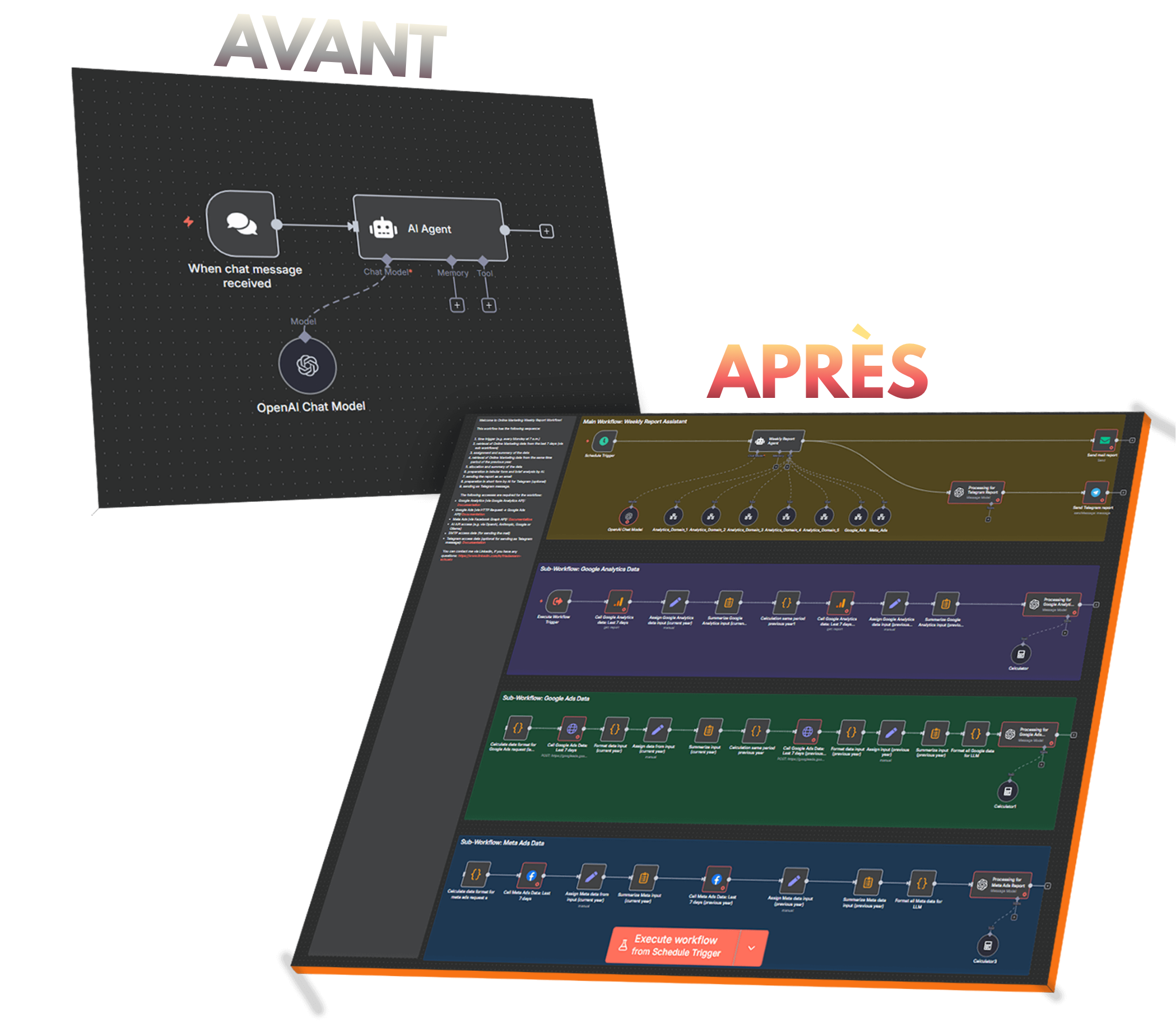 La première semaine, j’ai déployé 7 workflows : alertes Shopify → Slack, capture de leads Airtable, enrichissement d’API, planificateur avec relances…